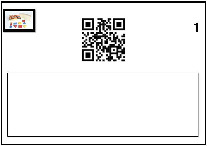 1. Reconeixement i identificació de formes geomètriques: Consisteix en escanejar el codi QR que apareix a la pàgina. La tauleta ens redigirà a una imatge que hem creat i que conté una forma geomètrica. Llavors l'infant haurà d'agafar el bloc lògic corresponent a la imatge i col.locar-lo al rectangle de sota. A dalt, a la dreta de la página, apareix un número que serveix a la mestra per identificar de quina forma es tracta, sense la necessitat d'escanejar el codi. Així l´1 representa els cercles, el 2 els quadrats, el 3 els rectangles i el 4 els triangles.